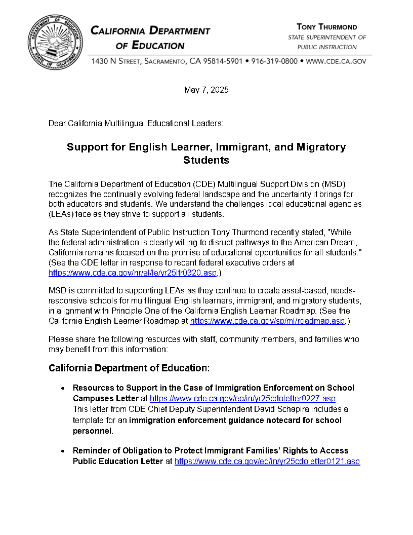 WACSEP and our member districts are commited to providing a safe and supportive learning environment for all students, regardless of immigration status.